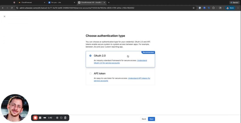 - Service Account is the preferred method of setting up our permissions with Jira, as it’s not tied to a user like OAuth.