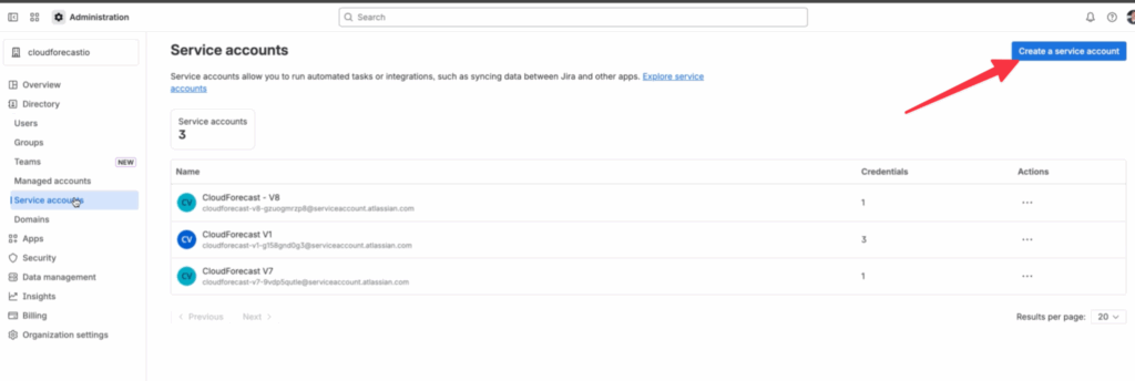 - Name the new service account CloudForecast and provide an optional description of what it is for, so you can reference it later.