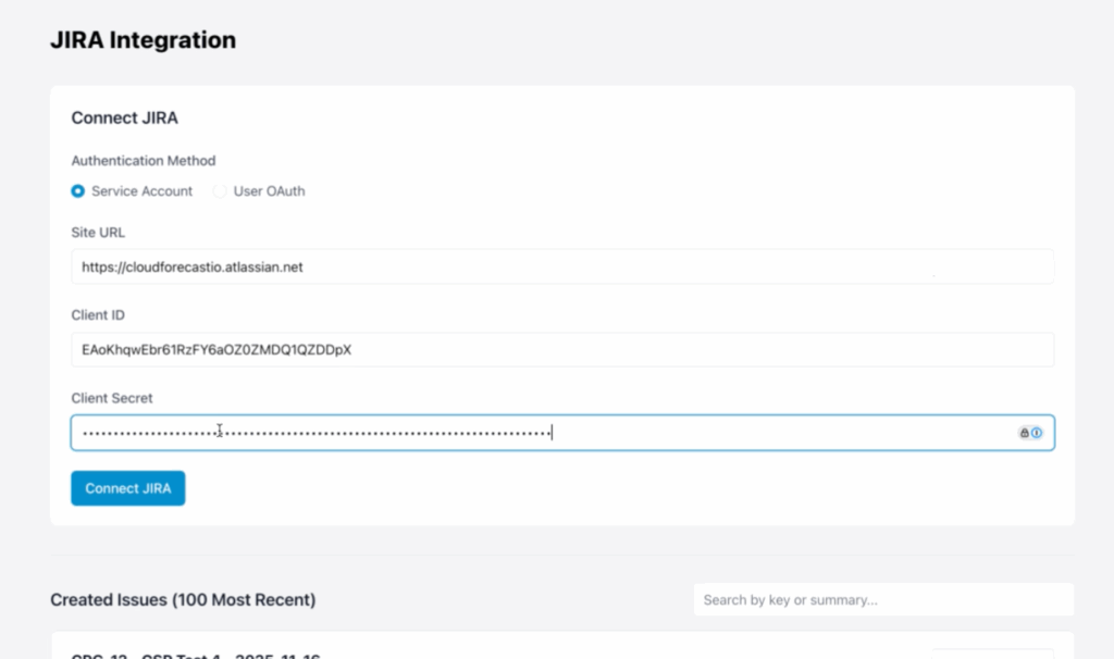 - Press Connect JIRA in CloudForecast